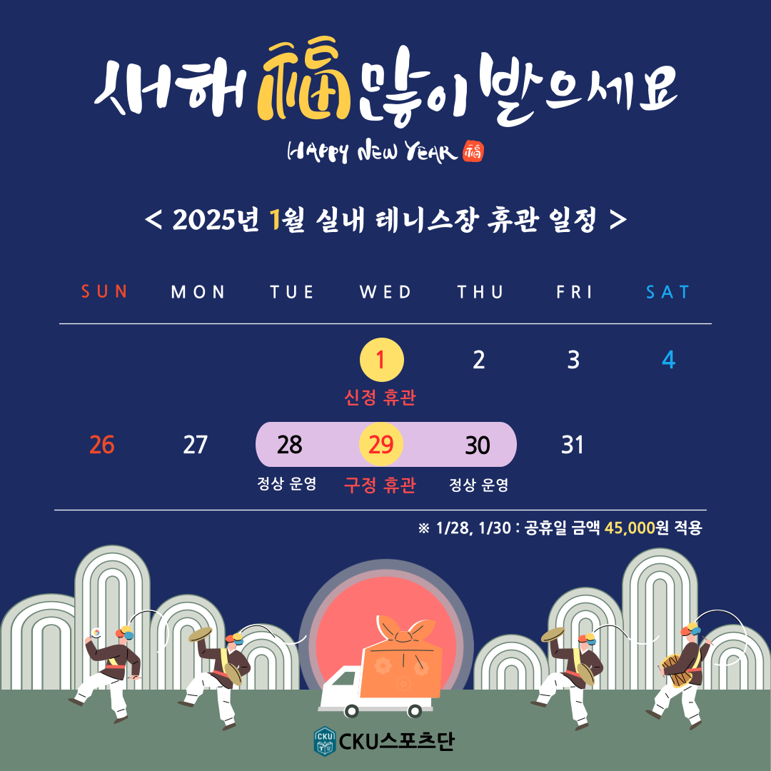 | 15 | 실내 테니스장 민족대명절 설연휴 휴관 일정 안내 | 관리자 | 2024-12-27 | 206 |
